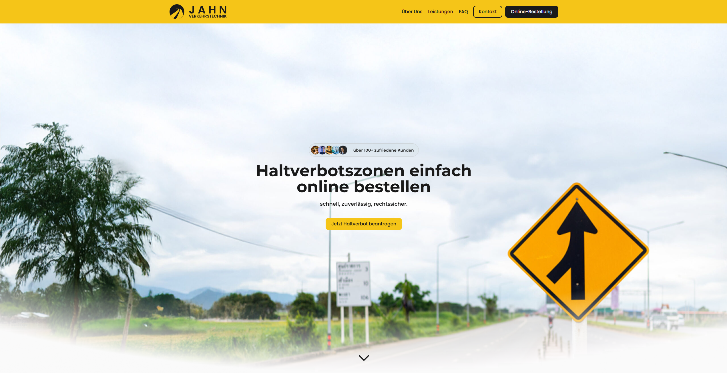 Jahn Verkehrstechnik ist ein Dienstleister für Haltverbotszonen, Baustellenabsicherung und Verkehrsbeschilderung. Ziel war es, die Website als zentrale Plattform aufzubauen, über die Kunden schnell und unkompliziert Haltverbotszonen online beantragen können. Gleichzeitig sollte die Seite Vertrauen schaffen, alle relevanten Informationen transparent darstellen und die Professionalität des Unternehmens widerspiegeln.